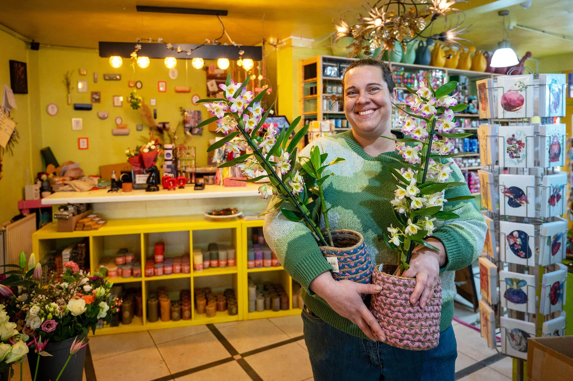 Het meest bijzondere aan mijn werk vind ik het maken van rouwwerk. Om iets voor iemand te kunnen doen voor de allerlaatste keer. Een laatste groet en een troost voor de naasten. Één keer heb ik zelfs met tranen in mijn ogen gestaan toen de naasten het rouwstuk kwamen halen. Gelukkig is er in de winkelruimte voor alle emoties. Met collega’s kan ik goed praten en vooral héél goed lachen. We hebben onderling veel lol en het gebeurt zelden dat ik geen zin heb om naar werk te gaan. Hier voelt het vertrouwd en krijg ik alle vertrouwen zo doe ik sinds 2022 ook de social media kanalen voor beide winkels. Zo ben ik tegenwoordig niet alleen bezig met bloemen en planten maar ook met fotografie, teksten schrijven en ideeën bedenken voor nieuwe content en acties. Dit maakt mijn werk afwisselend, uitdagend en leuk!