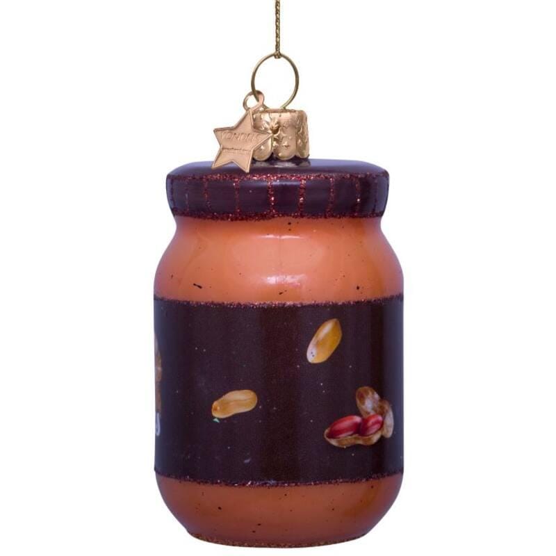 Een nostalgische aanwinst voor je kerstboom! Deze handgemaakte glazen kerstbal is een gedetailleerde replica van een pot pindakaas. Het vrolijke design met de tekst 'Smeuïge Pindakaas' en de afbeelding van pinda's brengt een glimlach op het gezicht van elke liefhebber van deze smeuïge lekkernij. Perfect om je kerstdecoratie af te maken of om cadeau te geven aan een familielid of vriend met een zoete tand.