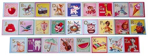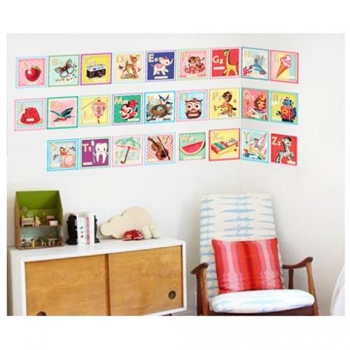 Alfabet Muurdecoratie Wu & Wu – Kleurrijke vintage ABC-kaarten van Fiona Hewitt