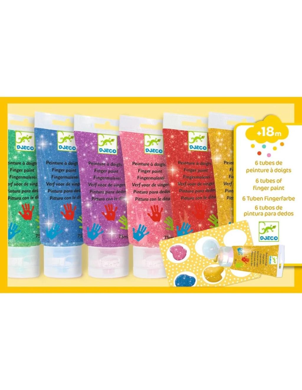 Djeco Glitter Vingerverf – 6 Tubes Fingerpaint met Palet (18 maanden+)