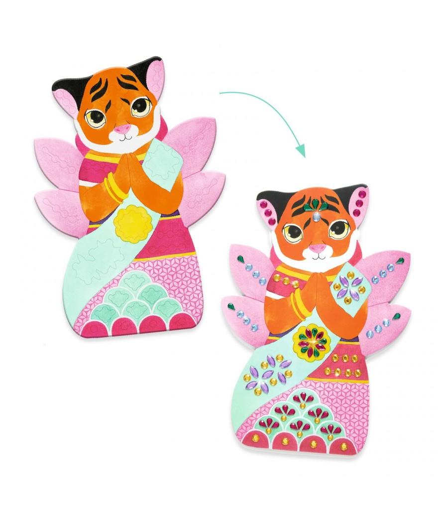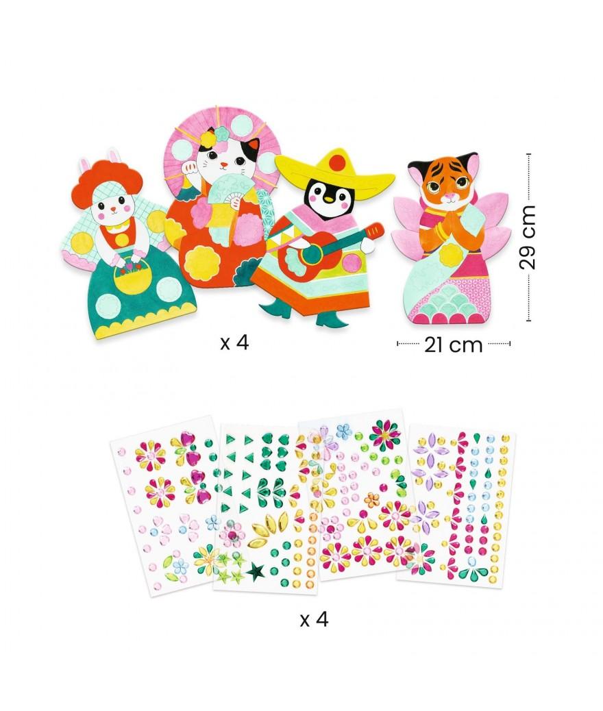 - Inhoud: 4 silhouet dierenkaarten van dik karton, 4 vellen met aan elkaar verbonden strass en 1 boekje met - stap-voor-stap uitleg.
