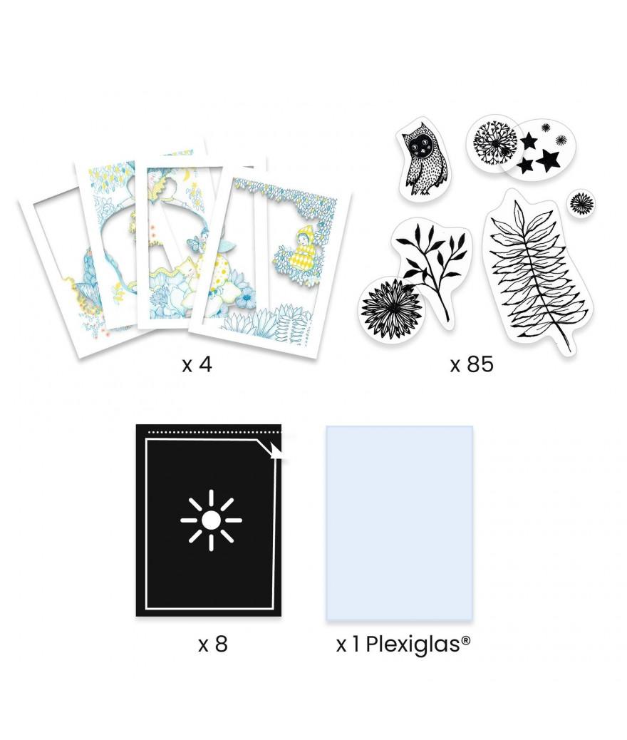 - Inhoud: 12 vellen lichtgevoelig papier, 12 geprinte motieven, 1 plaat van plexiglas.