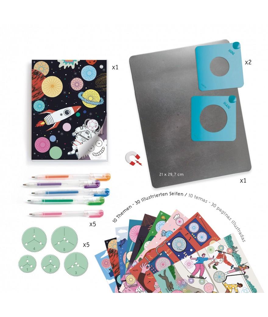 • Inhoud: Magnetisch bord, spiraalvormige sjablonen, en kleurrijke stiften.