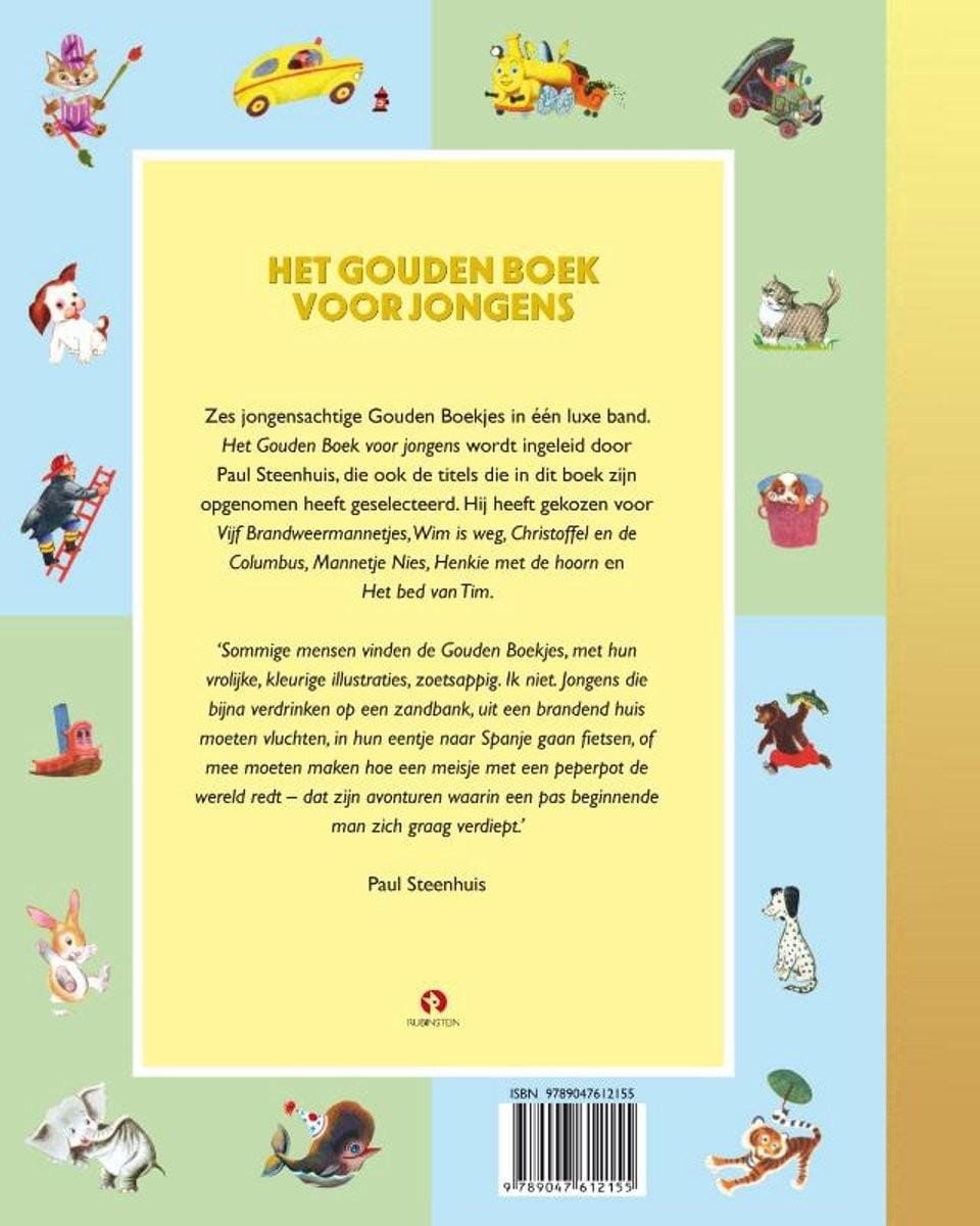Zes jongensachtige Gouden Boekjes in één luxe band. Het Gouden Boek voor jongens wordt ingeleid door Paul Steenhuis, die ook de titels die in dit boek zijn opgenomen heeft geselecteerd. Hij heeft gekozen voor Vijf Brandweermannetjes, Sambo, het kleine zwarte jongetje, Christoffel en de Columbus, Mannetje Nies, Henkie met de hoorn en Het bed van Tim.