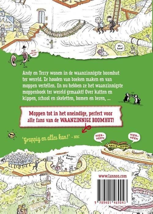 Andy en Terry wonen in de waanzinnigste boomhut ter wereld. Ze houden van boeken maken en van moppen vertellen. En nu hebben ze het waanzinnigste moppenboek ter wereld gemaakt! Over katten en kippen, school en skeletten, bomen en beren, ...