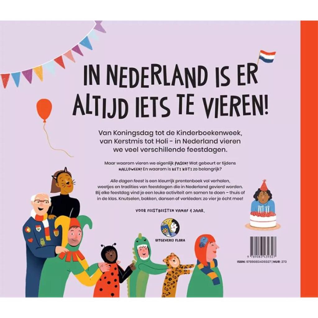 In Nederland is bijna elke maand wel een feestdag – en in Alle dagen feest ontdek je ze allemaal. Van Koningsdag tot Holi, van Kerstmis tot de Kinderboekenweek: dit vrolijke prentenboek laat kinderen op een toegankelijke en speelse manier kennismaken met de tradities achter onze feestdagen.