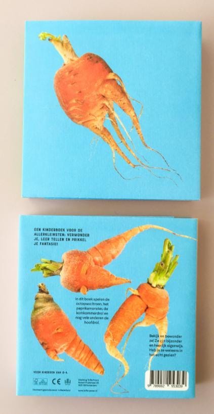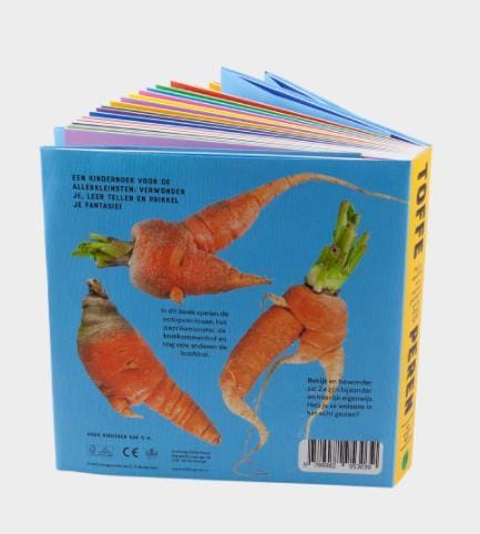- Verkrijgbaar in drie talen Nederlands “toffe peren”, Duits “Tolle Knolle” en in het Engels “quirky carrots”.