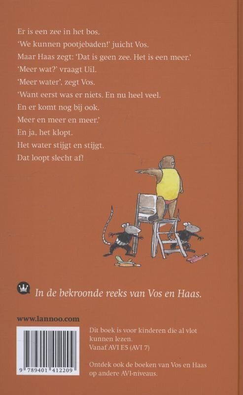 Perfecte mix van tekst en beeld op maat van beginnende lezers. Het bos van Vos en Haas dreigt te overstromen.