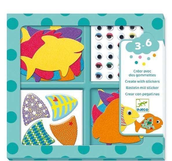 - Djeco Knutseldoos Creëren met Stickers Ik hou van Vissen
