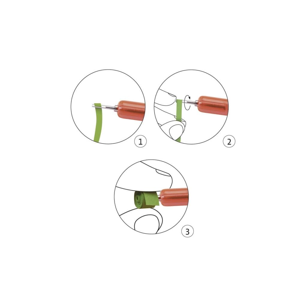 Door strookjes papier op te rollen met de filigraanpen maak je allemaal krullen, rondjes, blaadjes en andere versierselen. Hiermee kan je het haar van de ene dame en de rok van de andere dame laten wervelen. Een leuke, nieuwe techniek voor kinderen om te leren en die ze daarna ook in andere werkjes kunnen toepassen.