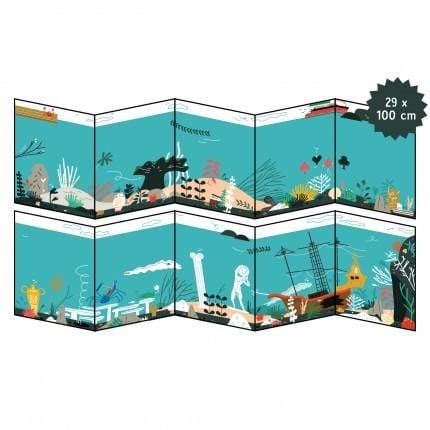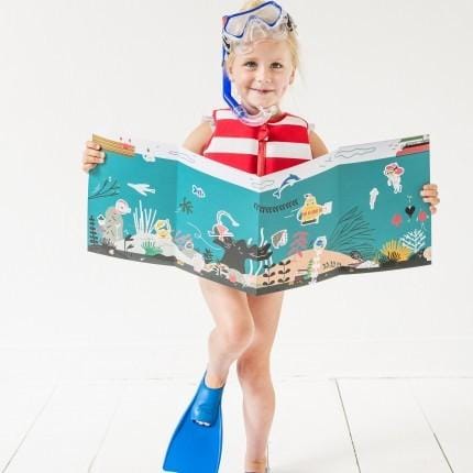 Een stickerplaat van een meter lang! Daar kun je heel wat uren plezier aan beleven. Verzin onderwater verhalen over zeesterren, vissen en krabben. De stickers zijn herplakbaar. De volgende keer kun je dus weer een nieuw verhaal verzinnen! Met wie duik jij deze stickerplaat in?