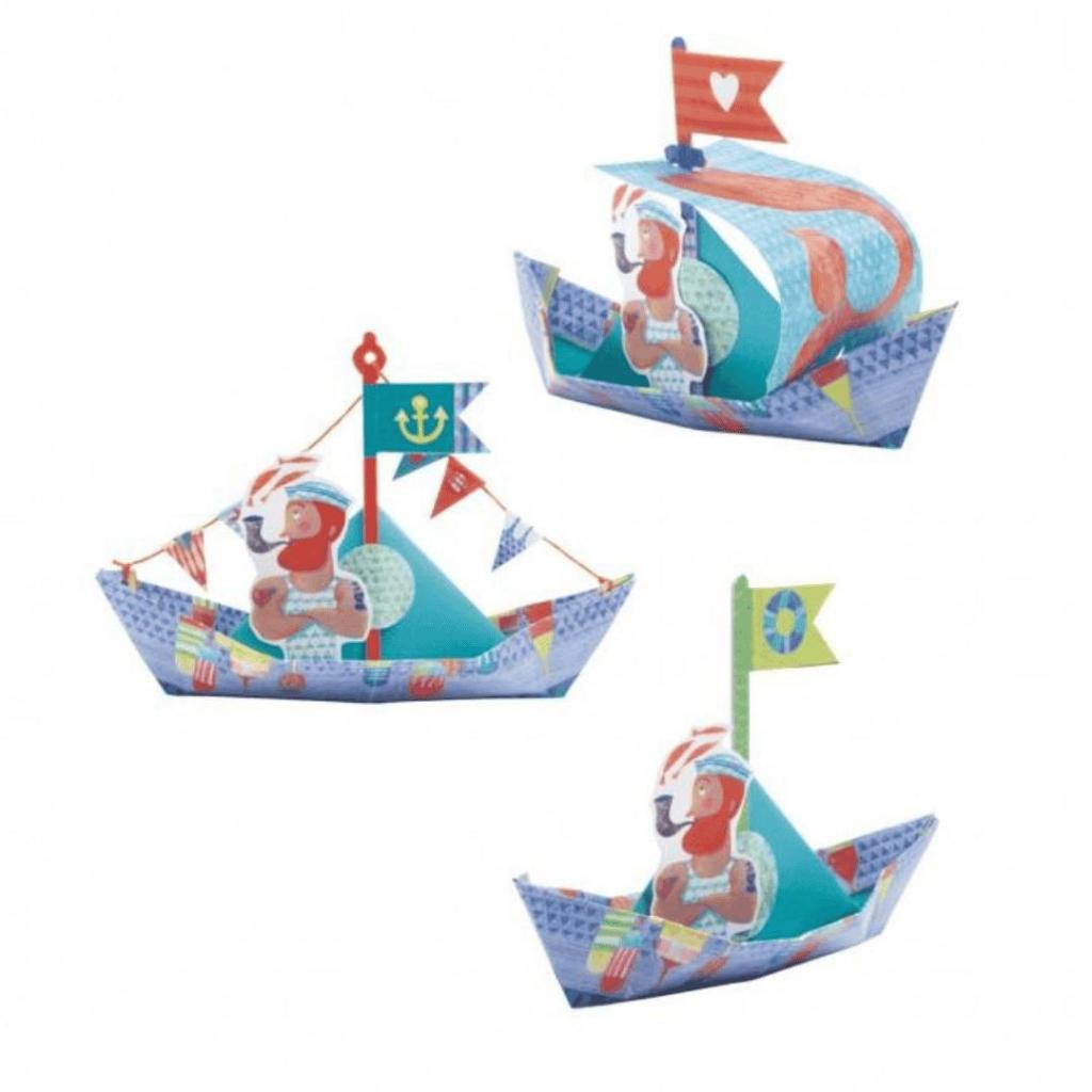 Origami knutselset boten op zee van Djeco met gevouwen papieren bootjes en piraten