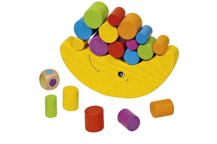 Een heel leuk evenwicht spel om samen met je kind(eren) te spelen. Om de beurt mag je gooien met de dobbelsteen. Pak in de kleur waar de dobbelsteen op valt een rond blokje en leg deze voorzichtig op de maan. Naarmate de stapel hoger wordt zal het moeilijker zijn om de maan in evenwicht te houden. Valt de stapel om, dan heb je verloren en begin je weer opnieuw.