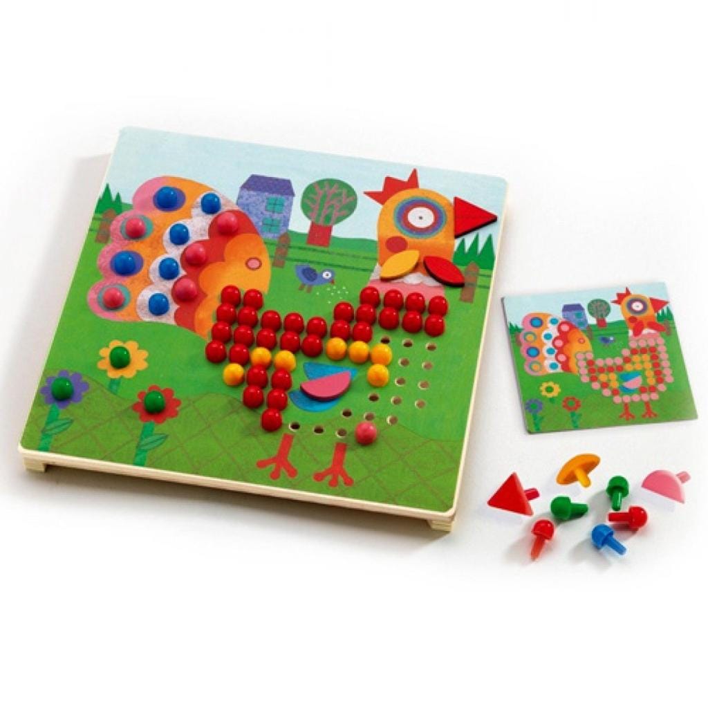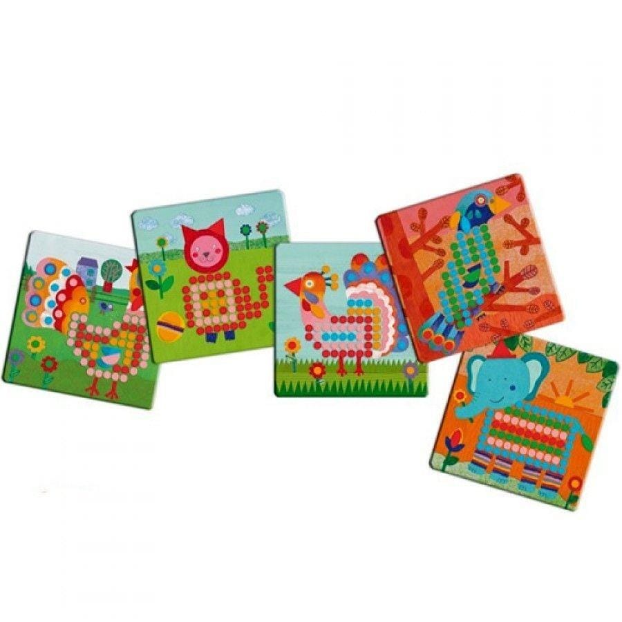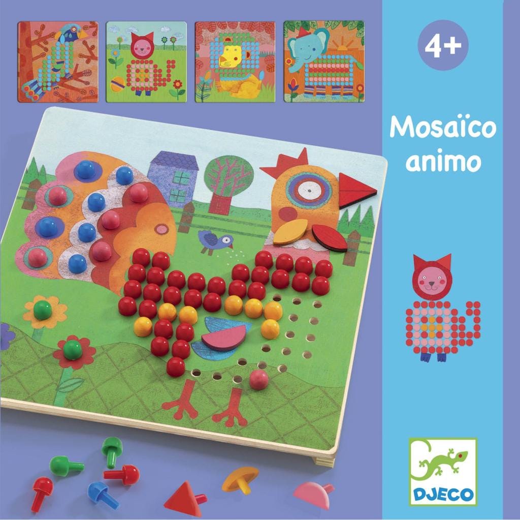 Met het Djeco Mozaïekspel – Animo ontdekken kinderen spelenderwijs vormen, kleuren én dieren. Door de gekleurde pinnen op de juiste plek te steken in het stevige bord, ontstaan er vrolijke dieren en patronen. De bijgeleverde voorbeeldkaarten helpen een handje, maar kinderen kunnen natuurlijk ook vrij creëren. Perfect voor kinderen vanaf 4 jaar, en een fijne manier om de fijne motoriek en concentratie te stimuleren.