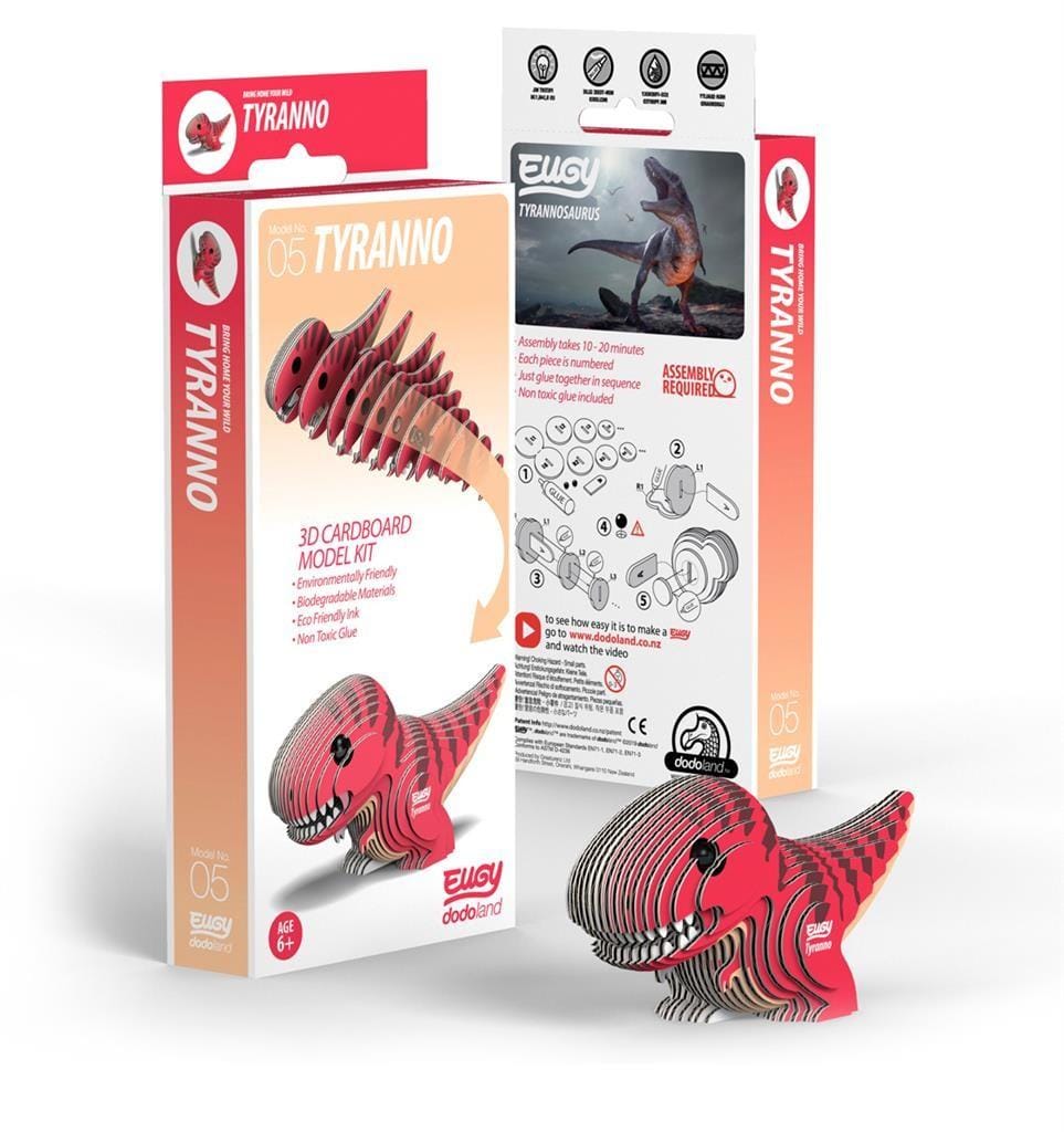 In 10 tot 20 minuten kun je deze gevaarlijk leuke 3D Eugy Tyrannosaurus maken. Ieder puzzelstukje is genummerd, plak de stukjes in de juiste volgorde op met de bijgeleverde lijm en geef jouw Tyrannosaurus een mooie plek in huis. Deze puzzel is geschikt vanaf 6 jaar.