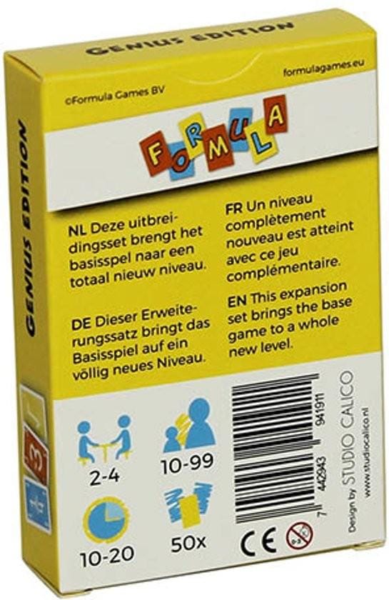 Bijna geen kind houdt van rekenen, maar spelletjes spelen vinden ze wel leuk! Met het spel Formula moeten ze ongemerkt toch gaan rekenen en zal deze basis vaardigheid ongemerkt enorm toenemen. Deze uitbreidingsset brengt het basisspel naar een totaal nieuw niveau. Deze set past in het doosje van de basisset. Wel zo makkelijk met opruimen.