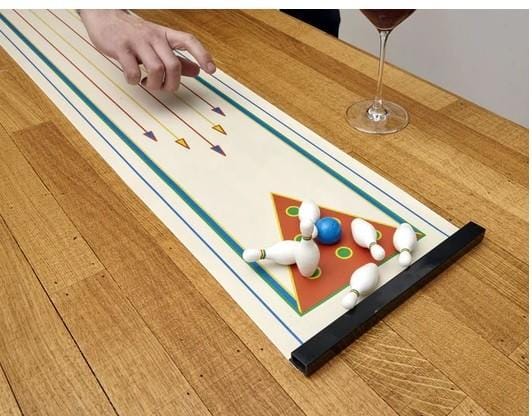 Strike op je bureaublad! Het Tafel Bowling Spel van Kikkerland brengt de gezelligheid van de bowlingbaan naar je woonkamer, kantoor of keukentafel. Dit compacte spel bevat alles wat je nodig hebt voor een mini potje bowlen: een houten baan, 10 kegels en een metalen bowlingbal met een handige katapult. Ideaal voor een korte pauze, een competitie met collega’s of gewoon een speels moment tussendoor. Klein van formaat, groot in plezier!