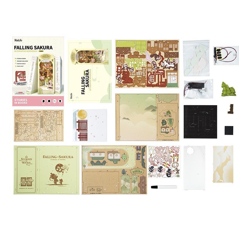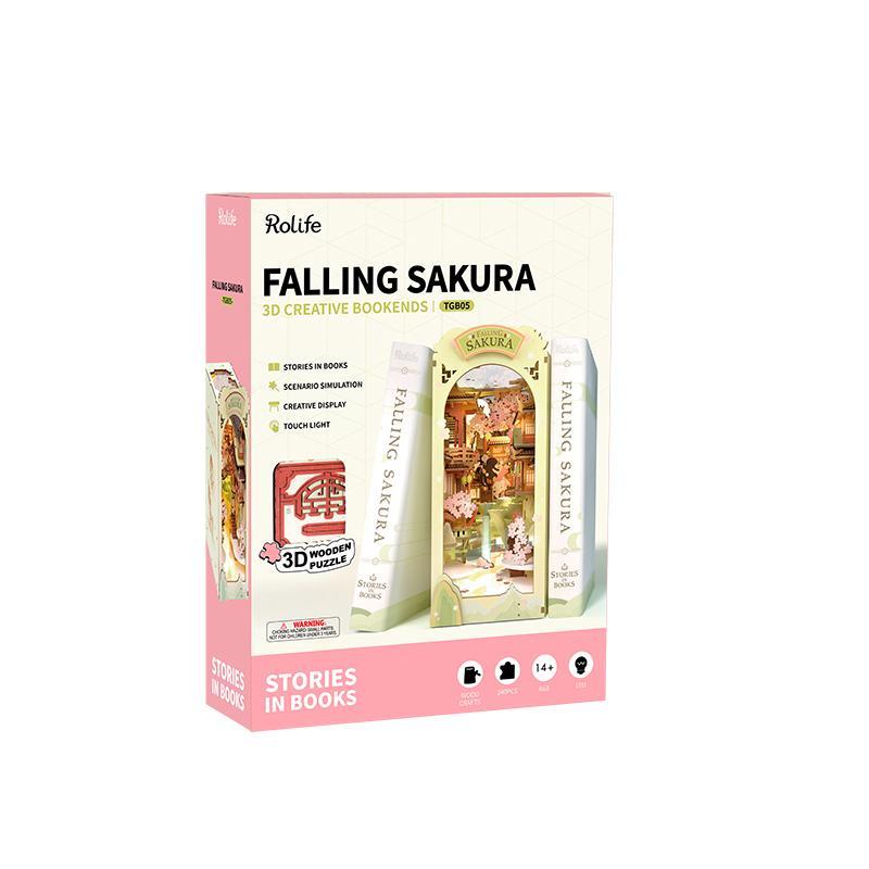 Dompel jezelf onder in de schoonheid van de Japanse natuur met de Falling Sakura. Dit unieke 3D houten puzzelpakket van Robotime laat je een miniatuurlandschap bouwen met een paviljoen, een vijver en natuurlijk de beroemde vallende kersenbloesems. Alle houten onderdelen zijn zorgvuldig lasergesneden en gemakkelijk in elkaar te zetten. Schakel de warme lichten aan voor een extra magische sfeer. Perfect als decoratie voor je boekenplank of bureau, of als uniek cadeau voor jezelf of iemand anders.