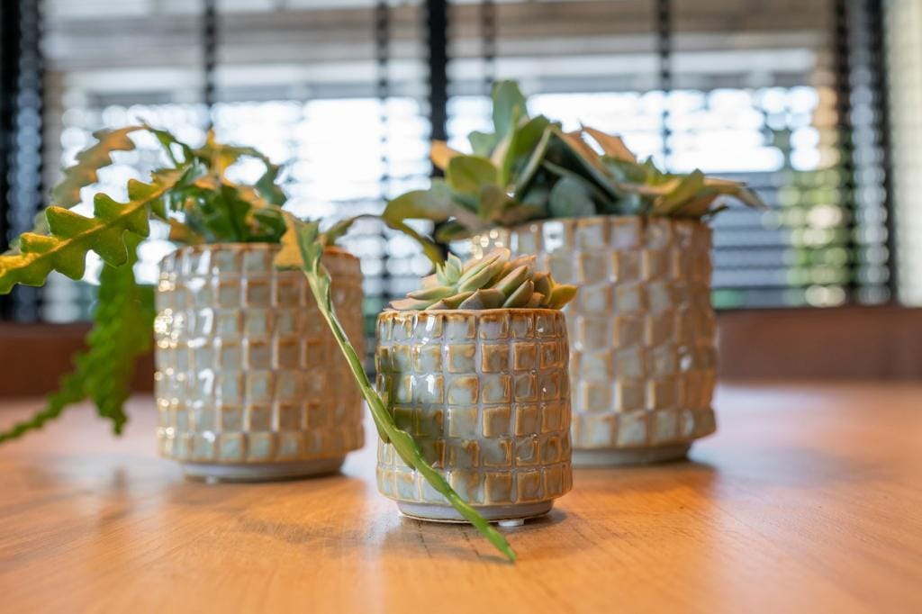 Een bloempot met een natuurlijk en grafisch uiterlijk. Het lijkt tegenstrijdig, maar het is juist die combinatie die Stian zo aantrekkelijk maakt. De grafische blokstructuur op de bloempot is organisch vormgegeven met een artisanaal karakter.