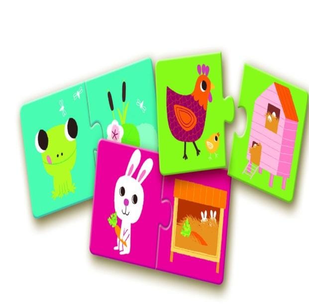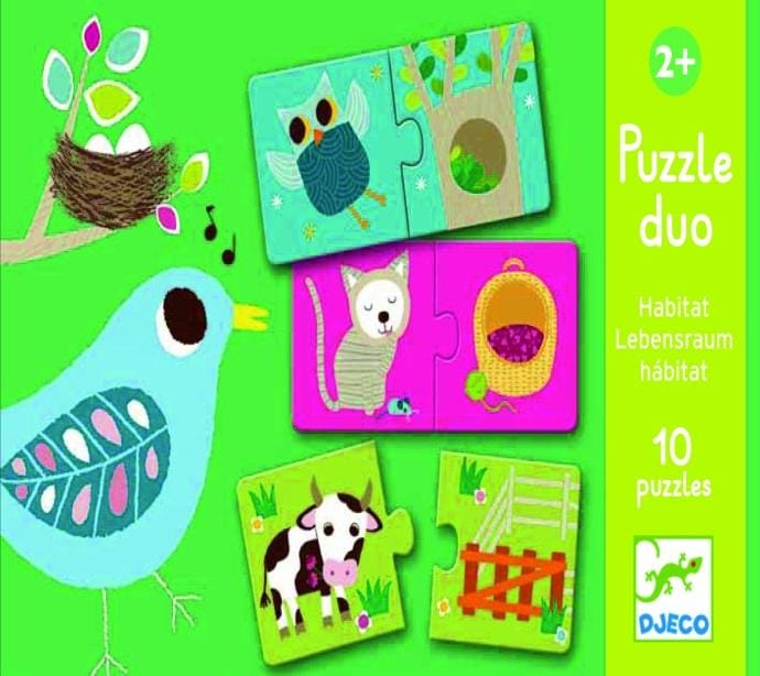 - Vrolijke kinderpuzzel met 10 verschillende puzzeltjes met dieren en hun habitat