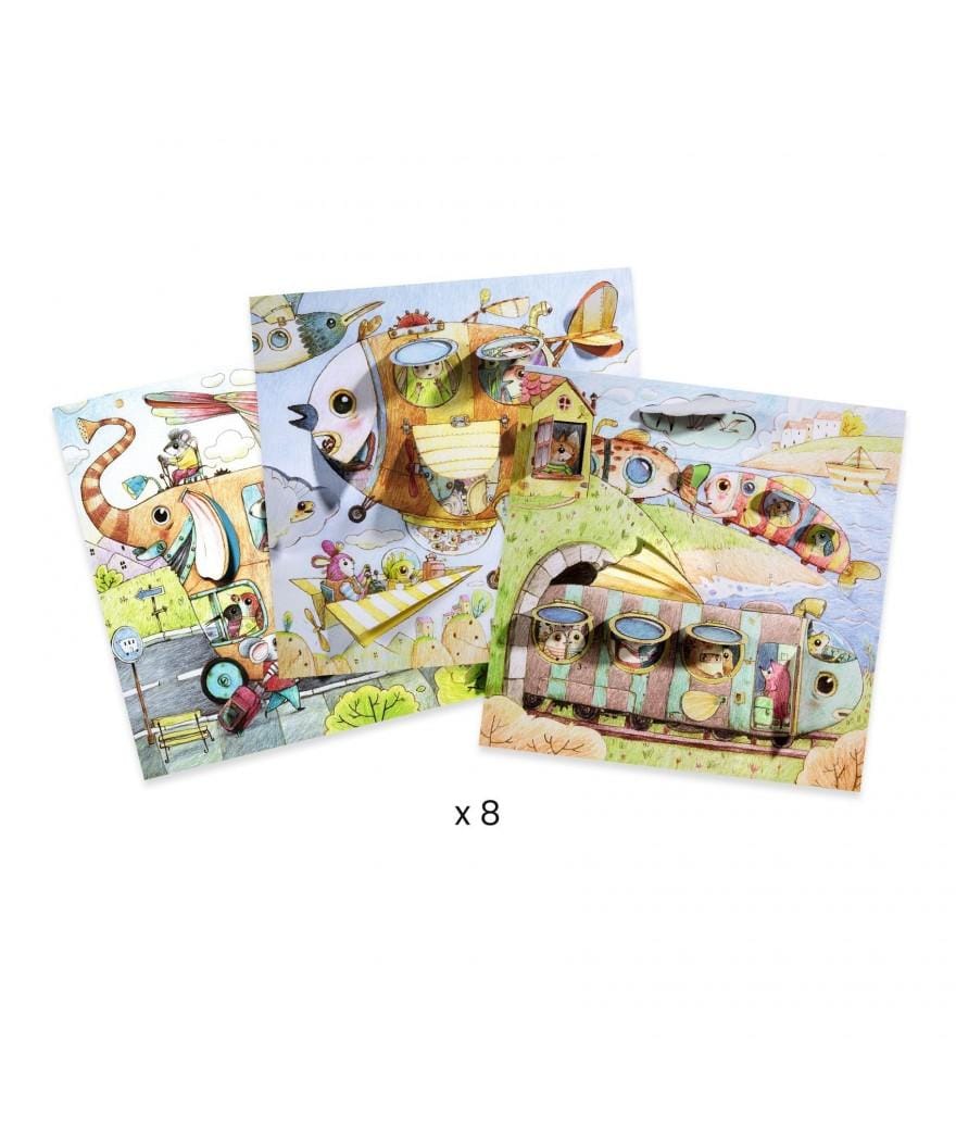 • Inhoud: 8 dubbele kaarten om in te kleuren (4 kaarten X2). Met flapjes en uitsparingen in 3D.