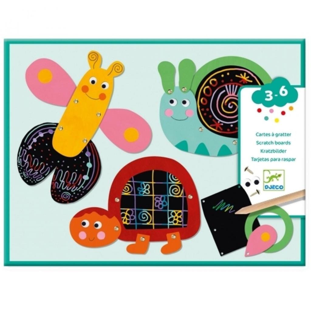 Maak kennis met de vrolijkste kraskaarten van Djeco! Dit creatieve knutselpakket is speciaal ontworpen voor kinderen van 3 tot 6 jaar. Met de meegeleverde kraspen krassen kinderen zelf patronen tevoorschijn op de zwarte kaarten, waarna ze de onderdelen samenstellen tot grappige dieren zoals een schildpad, vis, vlinder of slak. Elk dier krijgt bewegende delen dankzij de bijgeleverde splitpennen, wat zorgt voor extra speelplezier.