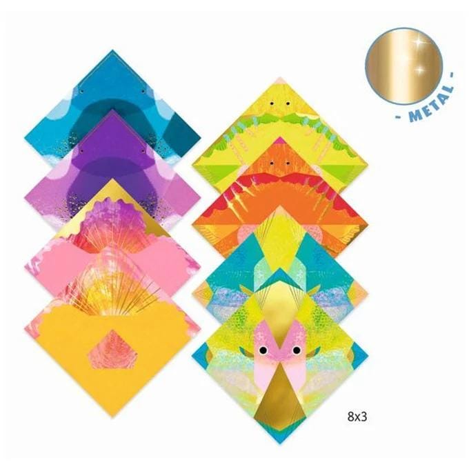 Jonge kinderen kunnen zich met dit knutselpakket de eerste beginselen van het Origami vouwen eigen maken. Met de stap voor stap instructie uit het meegeleverde boekje leren zij precies hoe ze de mooie Zeedieren moeten vouwen. De drie verschillende dieren en bloem kan je in twee verschillende kleuren maken. In het pakket zitten 3x8 verschillende vouwblaadjes.