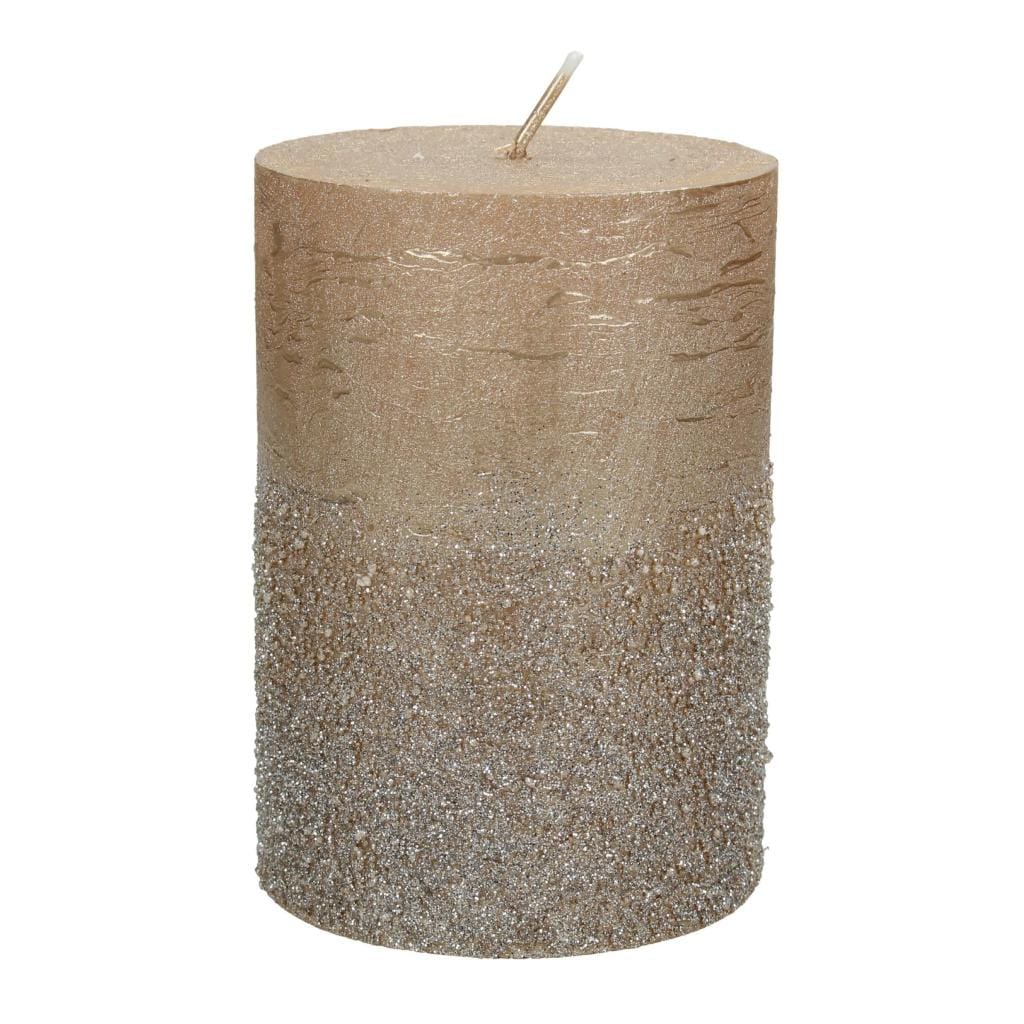 Deze tijdloze gouden glitter stompkaars is een echte klassieker. De combinatie van goud en glitter geeft de kaars een luxe uitstraling die past bij elke stijl. Of je nu van modern of juist van klassiek houdt, deze kaars is een stijlvolle toevoeging aan je interieur. Geniet van de warmte en het comfort van kaarslicht.
