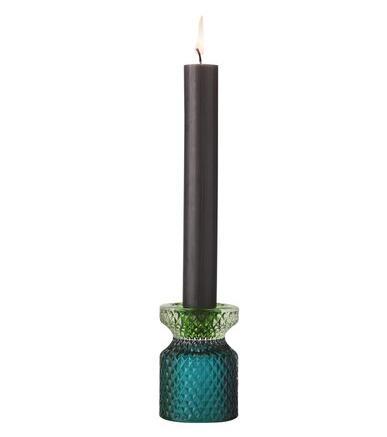 Breng een speelse en stijlvolle sfeer in huis met de Kandelaar/Windlicht Jacquard Turquoise-Groen. De combinatie van levendig turquoise en diep groen zorgt voor een unieke, sprankelende uitstraling. Zodra je een kaars of theelichtje aansteekt, verspreidt het jacquard-patroon een prachtig lichtspel in de ruimte.