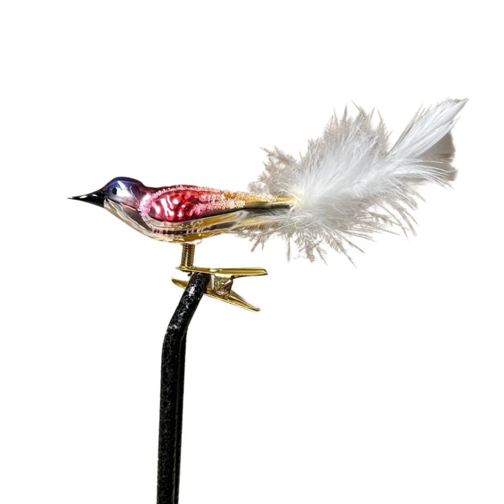 Ontdek de verfijnde schoonheid van onze mini-vogel Evi. Met haar zachte roze en paarse tinten en glanzende afwerking is ze een waar kunstwerkje. De witte veertjes aan haar staart voegen een vleugje elegantie toe. Handgemaakt van hoogwaardig glas, is deze kerstbal een tijdloos sieraad voor elke kerstboom.