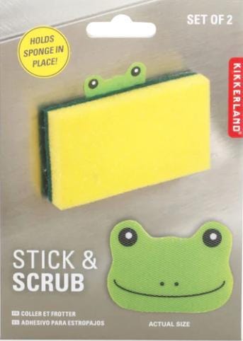 Houd je spons binnen handbereik en van de toonbank! Schattige velcro-kikker die aan de zijkant van de gootsteen blijft plakken en je spons vasthoudt. 3M-band. Eenmalig gebruik. Handige vriend om je spons vast te houden. Set van 2.