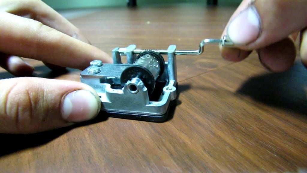 - Draai aan het hendeltje om het muziekdoosje te laten spelen