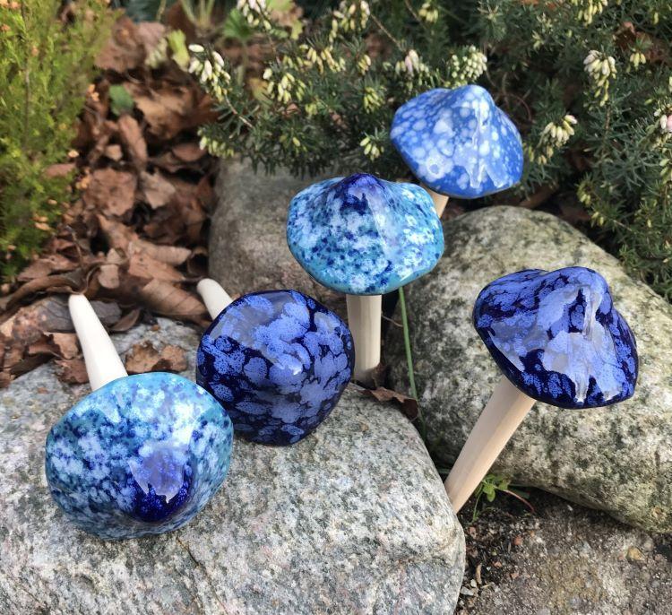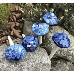 Deze handgemaakte keramische paddenstoelen zijn een ode aan de natuur. Geïnspireerd door de diverse vormen en kleuren van echte paddenstoelen, zijn deze unieke decoratiestukken met zorg vervaardigd. Elk stuk is uniek en heeft zijn eigen karakter, dankzij de handgemaakte afwerking en het gebruik van verschillende blauwtinten. De paddenstoelen zijn gemaakt van aardewerk en hebben een matte glazuur. Ze zijn geschikt voor zowel binnen als buiten en brengen een vleugje natuur in elke ruimte.
