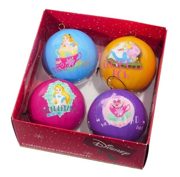 - Set van 4 Alice in Wonderland Kerstballen