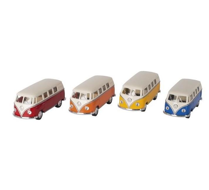 Geef deze Volkswagenbus 1962 een mooi plekje in jouw woonkamer en beleeef het bijzondere vrijheidsgevoel van de enige echte camper! Op een schaal van 1:60 komt de T1 precies overeen met de echte. Officieel gelicentieerd door Volkswagen is deze speelgoed auto een heus collector's item. Verkrijgbaar in diverse varianten. Aan wie geef jij deze fantastische retro auto cadeau?