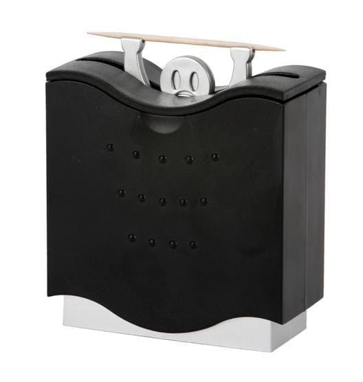 Tandenstokerhouder HELP! – Met Uitschuifmechanisme & Navulklepje – Inclusief Tandenstokers – 8,9 x 7,8 x 3,6 cm – Zwart/Grijs – Balvi