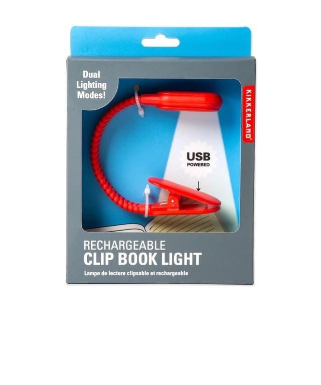 Breng wat kleur in je leesmomenten met het oplaadbare clip boeklampje in rood van Kikkerland.