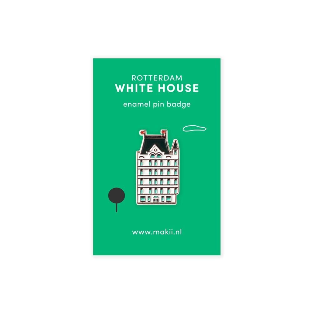 Emaille pin van het Witte Huis: ontworpen door Molenbroek in 1898.