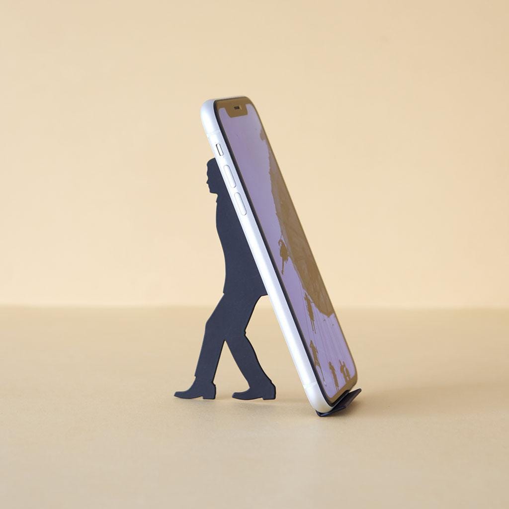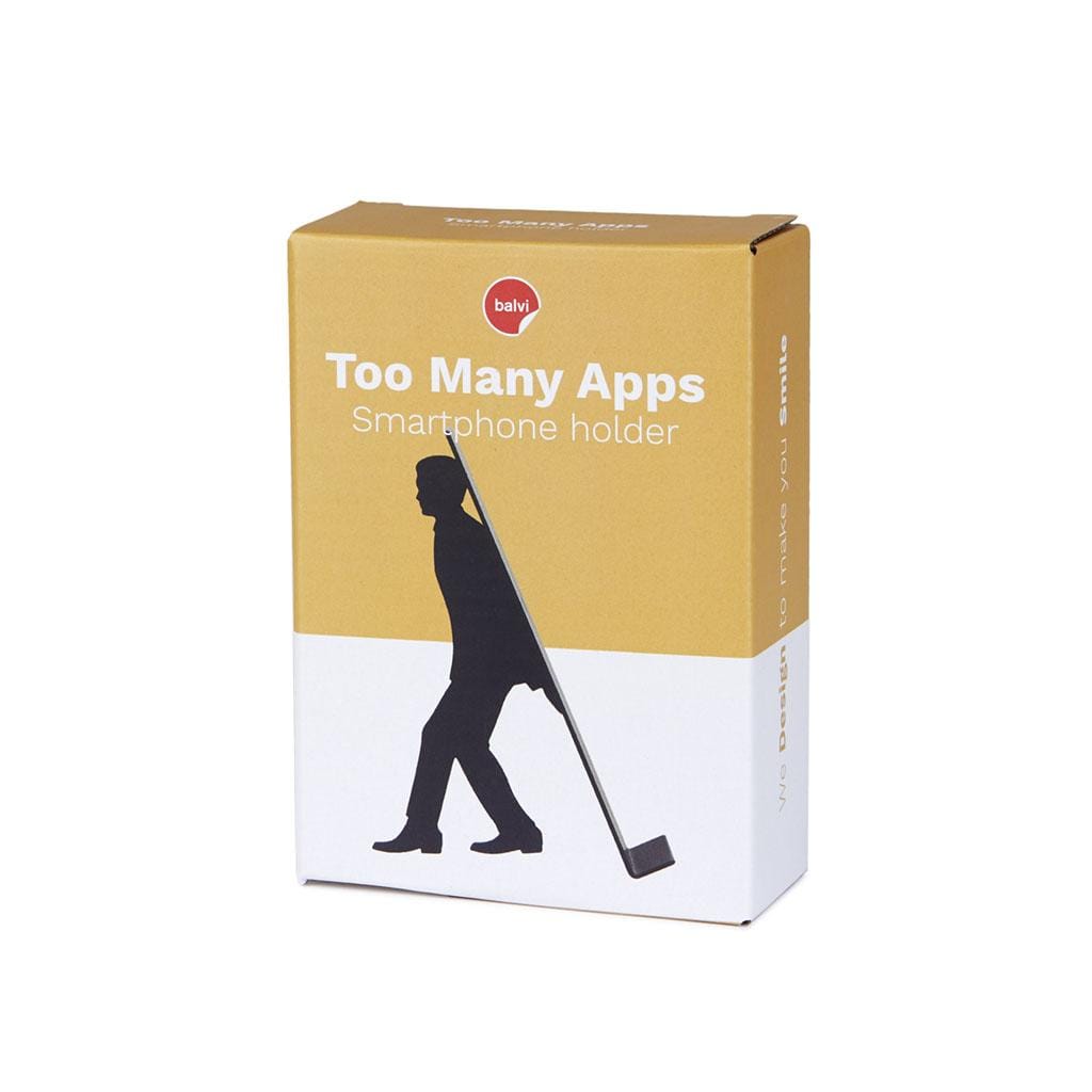 Telefoonhouder Too Many Apps – Zwarte metalen houder met strak design (12 x 9 x 4 cm, Balvi)