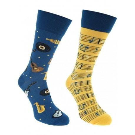 Drie paar vrolijke sokken van fijne hobby's waar bijna iedereen wel iets mee heeft: fotografie, fietsen en muziek. Of je ze nu zelf beoefend of er graag naar kijkt of luistert. Ieder paar sokken bestaat uit 2 verschillende sokken die samen het perfecte paar vormen. De grotendeels katoenen sokken zijn verkrijgbaar in 3 maten voor de schoenmaten 35 t/m 46.