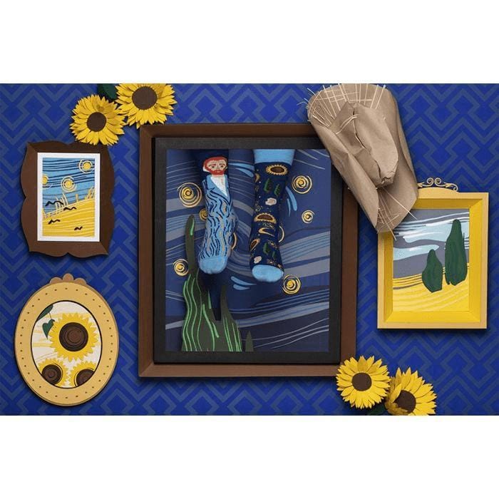 Wie aan Vincent van Gogh denkt, kan niet om de zonnebloemen heen die hij veelvuldig heeft geschilderd. In kleuren die van het doek lijken af te spatten. Ook de sterrennacht is door niemand zo zinderend weer gegeven als door deze Nederlandse kunstenaar. Voor alle liefhebbers zijn ook van hem toffe MisMatch sokken verkrijgbaar.