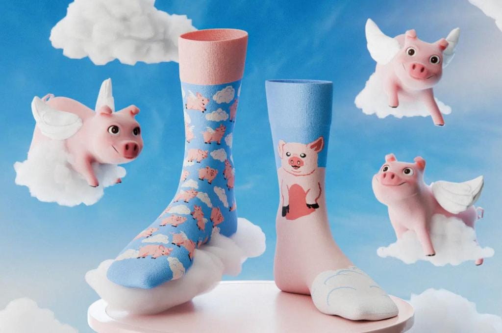 Many Mornings Mismatch Sokken – Piggy Dream – Maat 43-46 – Sokken met Vliegende Varkens