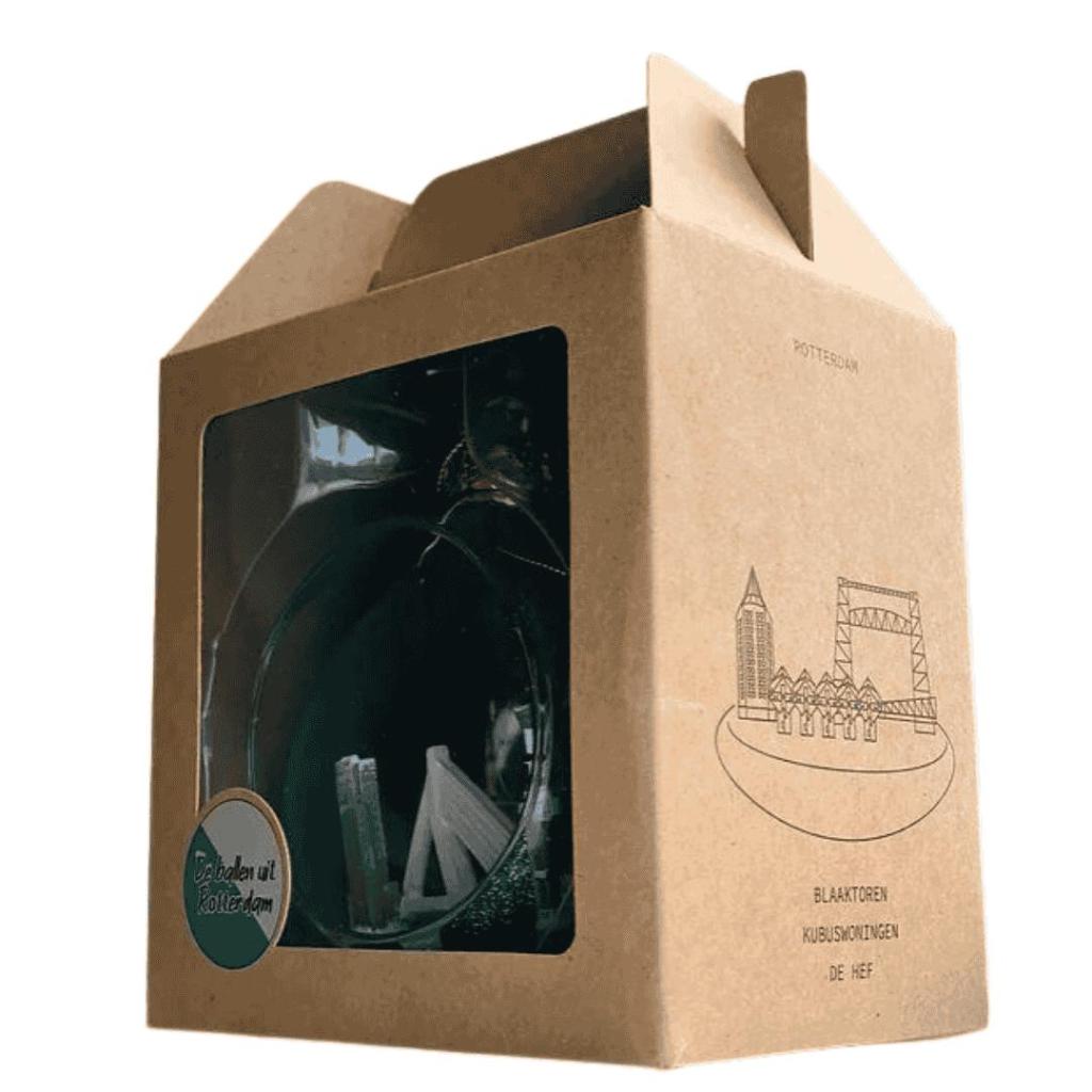 Deze unieke kerstbal van De Ballen Uit is een ode aan onze prachtige stad Rotterdam. De kleurrijke afbeelding van de Rotterdamse skyline is een echte eyecatcher en zal elke Rotterdammer met trots vervullen. Hang deze bal in je kerstboom en geniet van het uitzicht op de stad, zelfs tijdens de feestdagen.