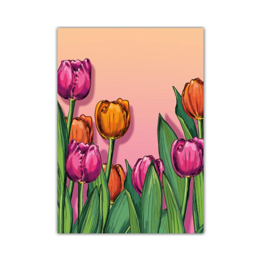 Ansichtkaart Liva – Illustratie van kleurrijke tulpen