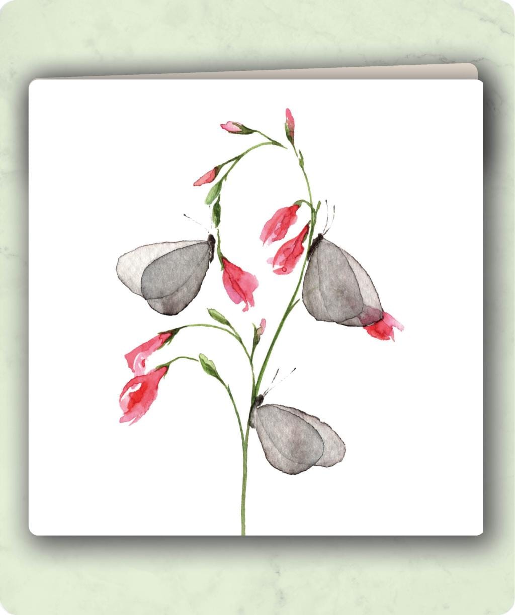 Een sfeervolle Zintenz dubbele kaart met een prachtige illustratie van papavers en vlinders. De tere bloemblaadjes en fladderende vlinders brengen een gevoel van rust en vrijheid, perfect om te versturen als felicitatie, bemoedigend gebaar of gewoon als lief berichtje.