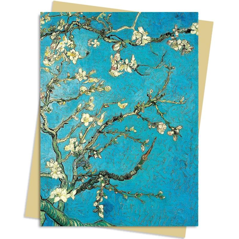 Deze dubbele wenskaart toont Almond Blossom, een van de meest geliefde werken van Vincent van Gogh. De bloeiende amandeltakken tegen de heldere blauwe lucht staan symbool voor nieuw leven en hoop. Een mooie kaart om te versturen bij een bijzondere gelegenheid, maar ook prachtig om neer te zetten of te bewaren.