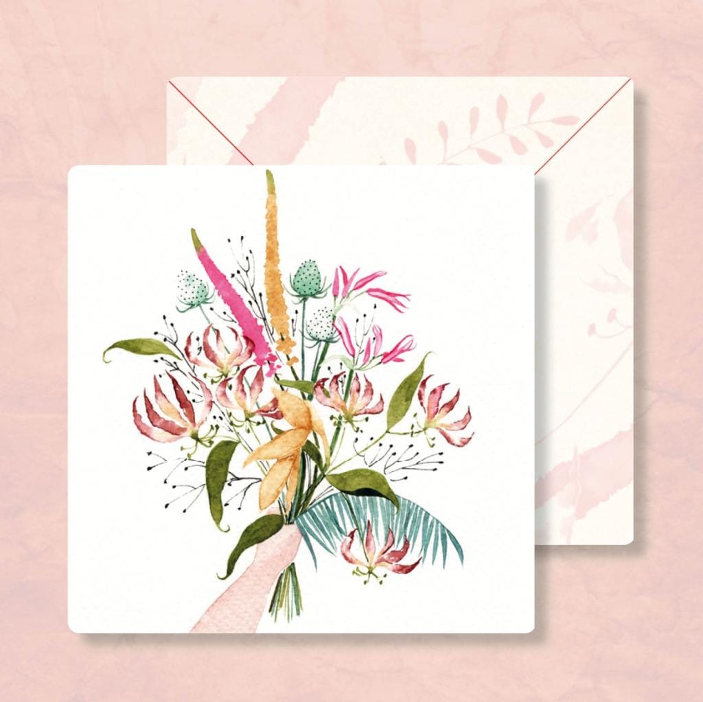 Breng kleur en vrolijkheid in iemands dag met deze prachtige Zintenz postkaart! De illustratie van een tropisch veldboeket straalt warmte, natuur en positiviteit uit. Perfect om iemand te feliciteren, een opbeurende boodschap te sturen of als decoratie. Duurzaam gedrukt met plantaardige bio-inkt op 100% gerecycled papier, een bewuste keuze met een bloeiende uitstraling.