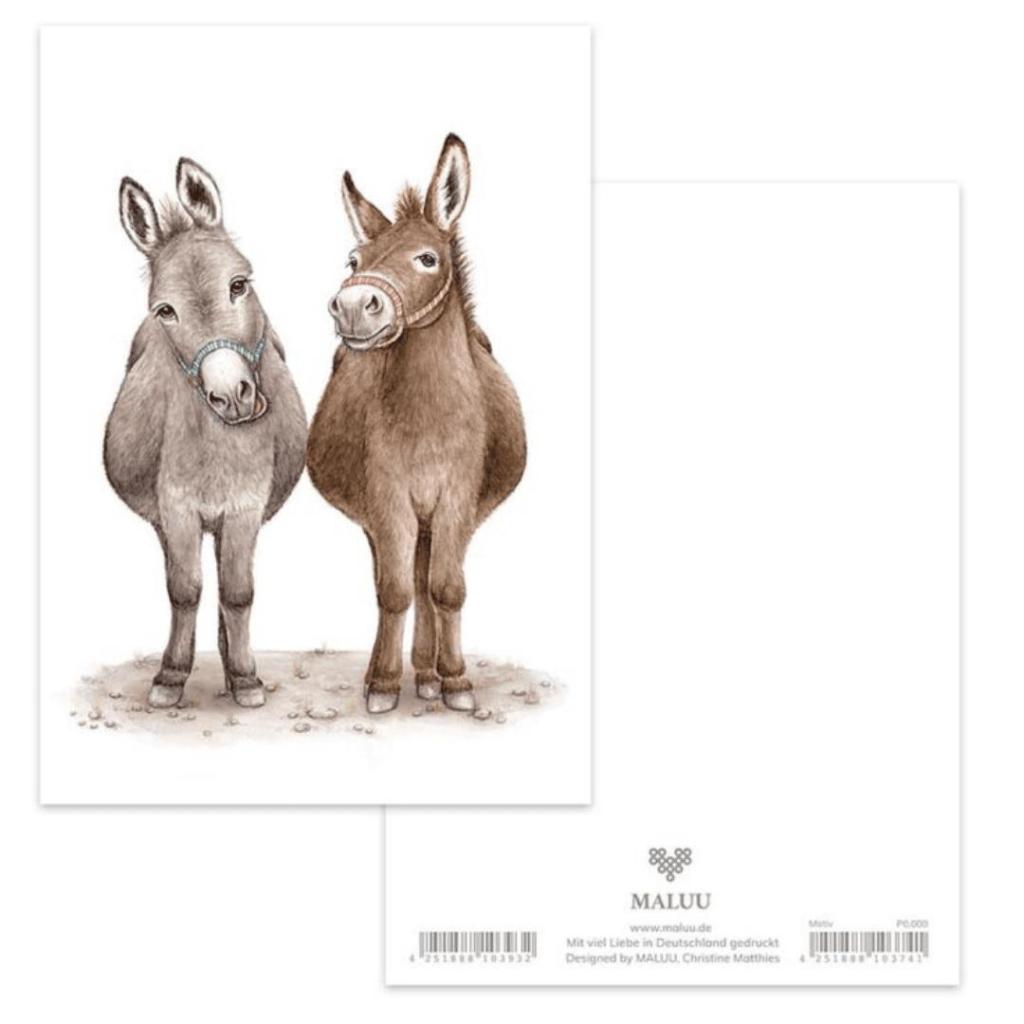 Ansichtkaart Twee Ezels – Aquarelontwerp van Christine Matthies