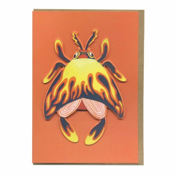De DM Wenskaart Firefly straalt letterlijk en figuurlijk! Daniel Mackie heeft dit betoverende insect op unieke wijze vormgegeven, met vurige details en dynamische kleuren die de magie van de vuurvlieg tot leven brengen. Een ode aan de nachtelijke dans van deze lichtgevende wezentjes.