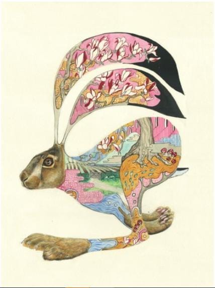 De wenskaarten van DM zijn stuk voor stuk kleine kunstwerkjes. Binnen de contouren van deze dierenlijven is de natuurlijke habitat van het afgebeelde dier geschilderd. De dubbele kaarten zijn verkleinde prints van een originele waterverftekening. De dubbele kaarten van 12,5 x 17,5cm zijn blanco van binnen en worden met enveloppe geleverd.